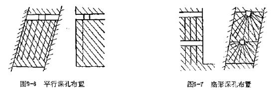 炮孔排列形式主要有平行排列(如圖6所示)和扇形排列(如圖7所示)兩種。