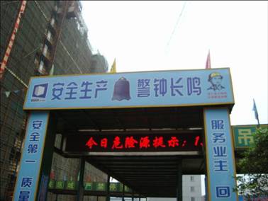 1、現(xiàn)場入口醒目處設置LED電子顯示屏,滾動播放今日重大危險源,促進現(xiàn)場安全宣傳和提醒。