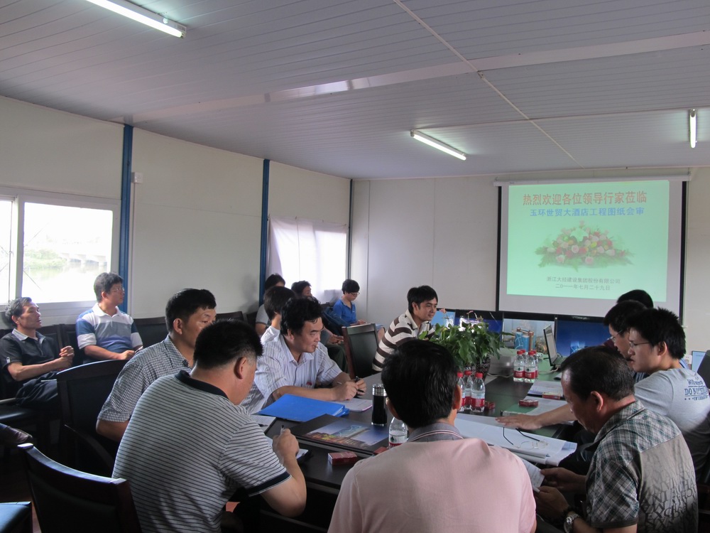 玉環(huán)世貿大酒店工程位于玉環(huán)昌業(yè)路,環(huán)保路交叉口,總建筑面積61159.7m2,建筑總高度105.38 m,地下一層,建筑面積為8878.8m2,地上5~23層,建筑面積為52280.9m2,結構類型為框架-核心筒結構。7月29日該工程順利通過圖紙會審。此次會審由業(yè)主主持,監(jiān)理、設計、施工各單位代表參加。項目部充分準備,總結圖紙內審并制作PPT播映,由設計逐條解決疑問,使施工人員能夠熟悉設計內容,能夠正確按圖施工,從而確保施工的質量,為工程爭創(chuàng)“魯班獎”奠定了強有力的基礎。